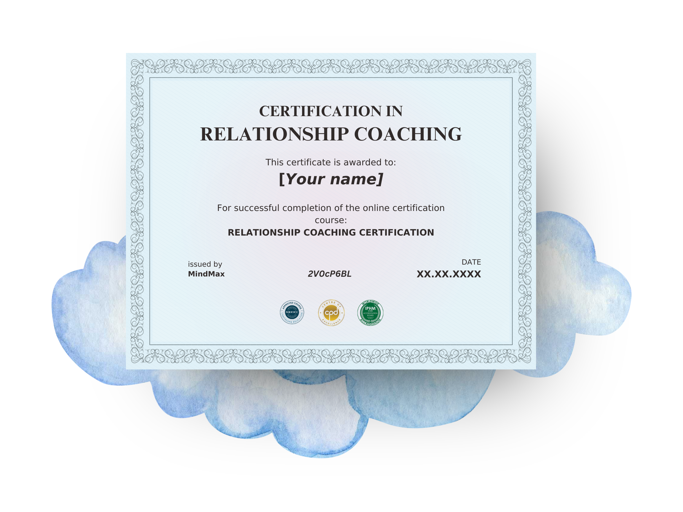 Upon completion, you’ll receive a personalized certificate as an Relationship Coach (MindMax) — recognized by multiple international accrediting bodies.