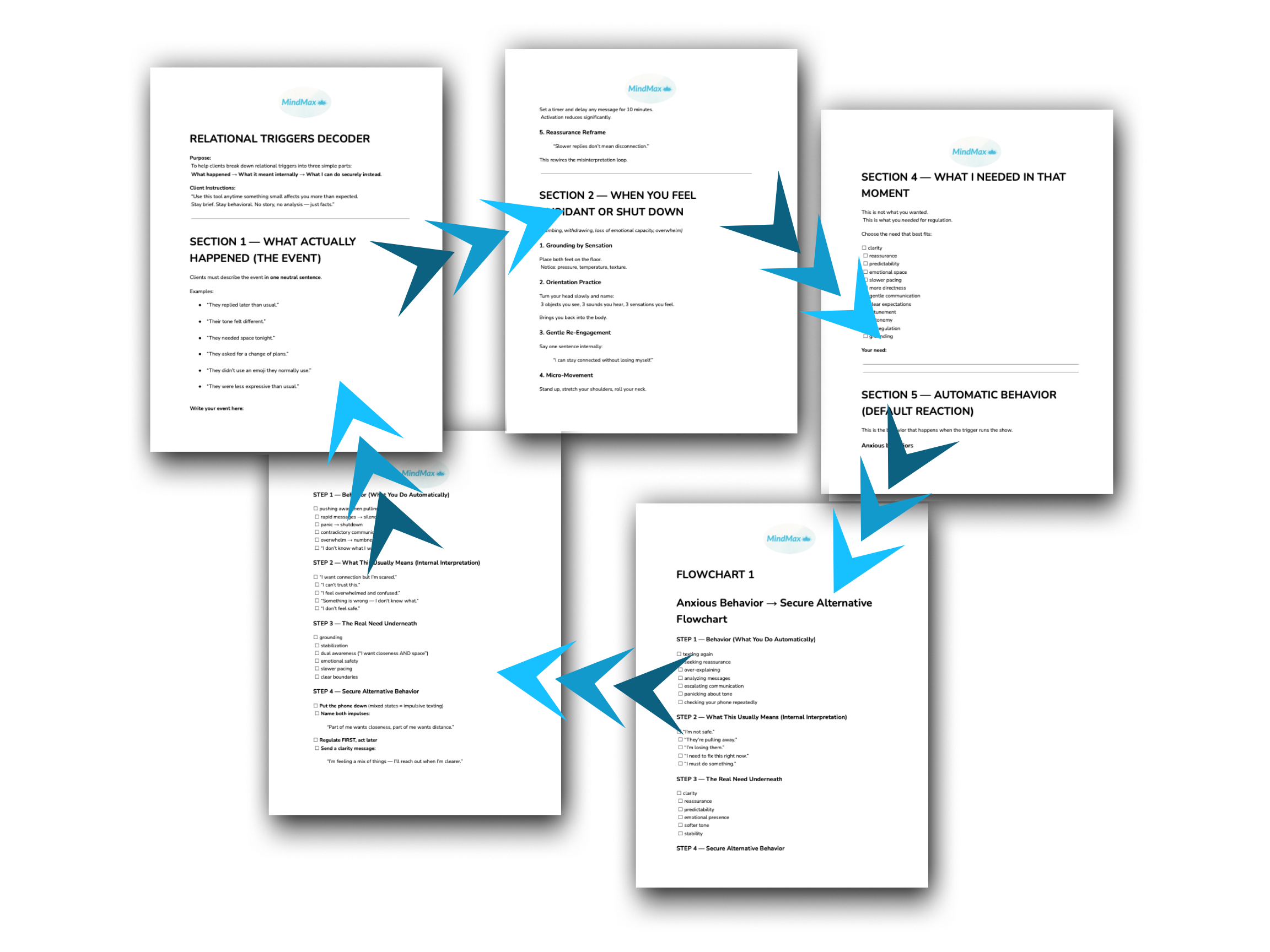 A professionally designed workbook that helps clients track progress, build self-awareness, and integrate secure relational behaviors week by week.