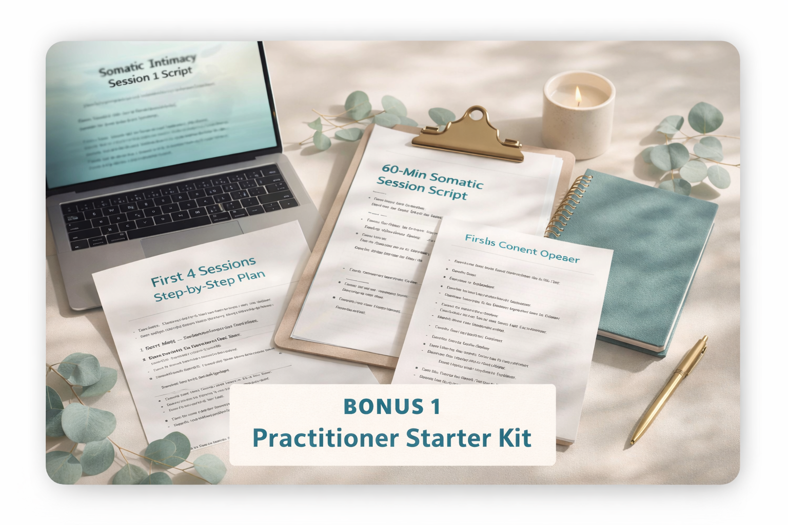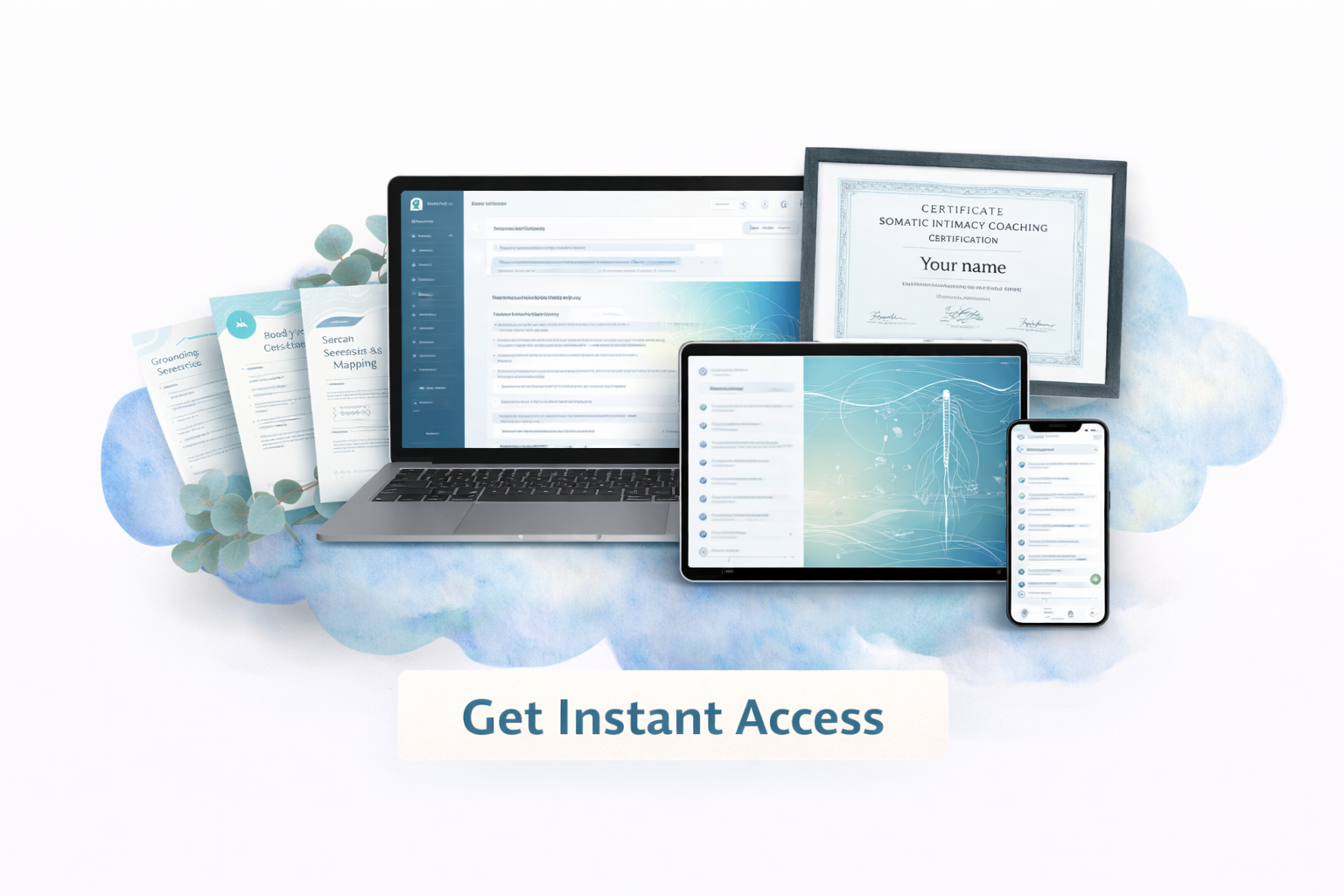 Somatic intimacy coaching gives you structured guidance, science-based tools, and nervous-system-safe practices you can use immediately to support clients.